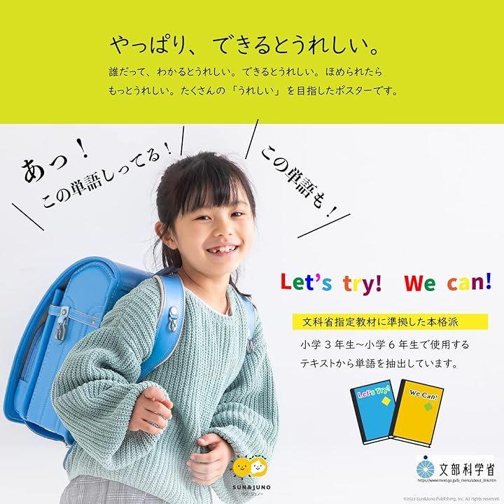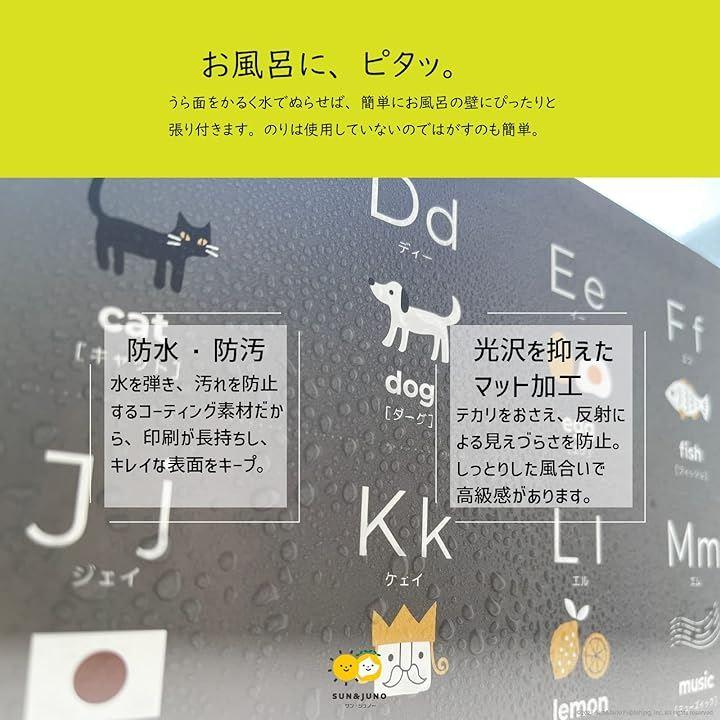 文部科学省の「Let's Try.」,「We Can.」(小学校で使っている全ての教科書のお手本)から26単語を厳選。「あれ。?この単語、見たことある。この単語も。」という状態を実現させます。 ニューユポFGS130紙は、防水、防汚の耐水インクで印刷されており、お風呂にも使えます。