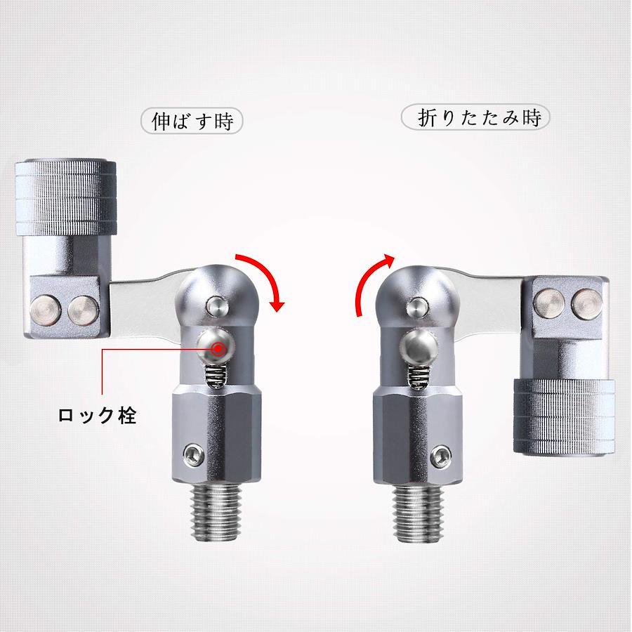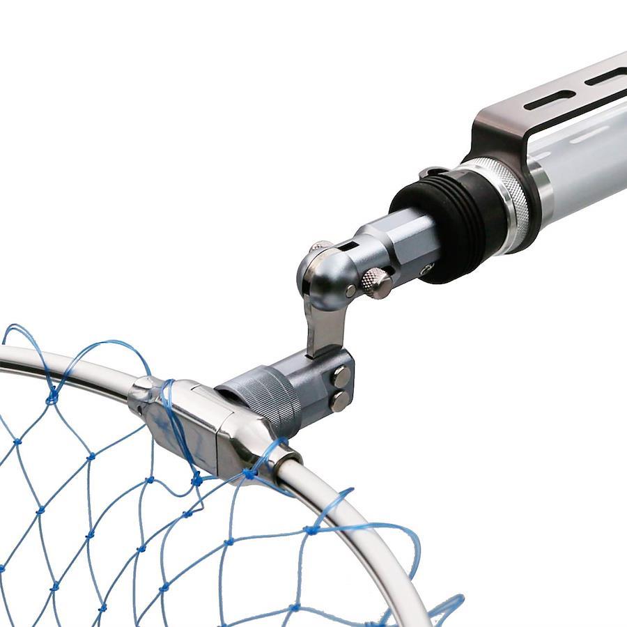 ロック機構部はワンプッシュで解除が可能なので、捕り込みの際もストレスなく片手でセッティングが可能。お手持ちのランディングネットに簡単に取り付けられる超軽量なジョイントシステム. タモ枠を折りたたんで持ち運び簡単。アルミ素材で軽量コンパクト。ロック機能を追加装着することでシーバスゲームで外せない風が吹く状況下でも、不意にフレームが開くことがなくロックが可能。 ロックレバーで折り畳むことが出来、又タモ枠の角度調節ネジもついて タモ枠とタモの柄をしっかりホールドします。 ネットのタスキ掛けや腰ベルトに刺し通す落し込みスタイルの場合でもロックされていることで、使用しない時はステイ状態をしっかりキープします。