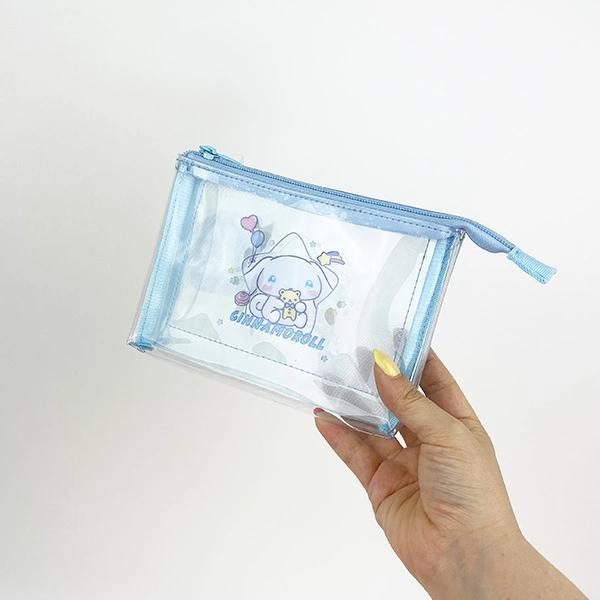 推し活もできちゃうシナモンロールのクリアポーチです。仕分けできるポケットが3つもついていてとても便利!クリアなので中身も一目で確認できちゃいます♪