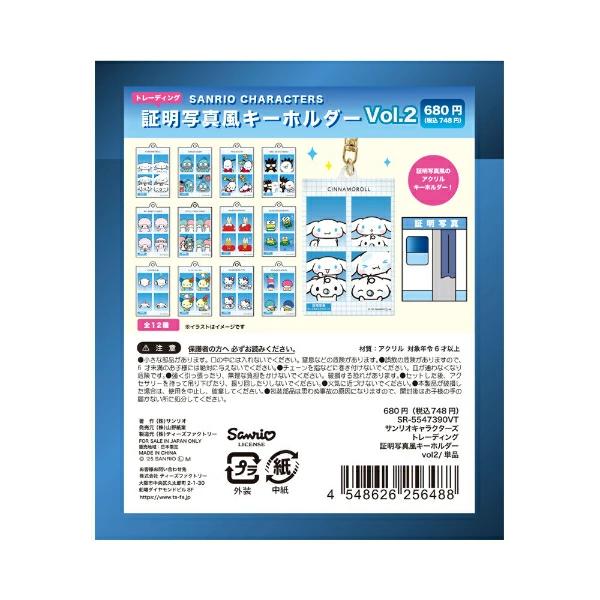 サンリオキャラクターズの証明写真風キーホルダーBOXセットです。全12種類あるのでお好きなキャラクターをお友達と分け合うのも◎SNSで話題の証明写真風デザインがアクリルキーホルダーになっちゃいました!ぜひバッグやポーチにお気に入りのキャラクターをつけてお楽しみください♪