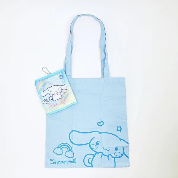 シナモロールの平成レトロなモチーフを取り入れたキャラクターたちがとってもおしゃれで胸がキュンキュンしちゃうシリーズの折りたたみカジュアルトートバッグです。カラビナ付きなのでバッグなどに付けて持ち運べます!内ポケット付きなのが嬉しいポイント♪これさえあれば急なお買い物でも安心◎どこか懐かしいデザインなので注目されること間違いなしです☆彡