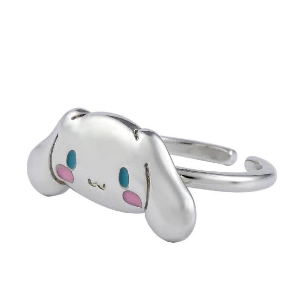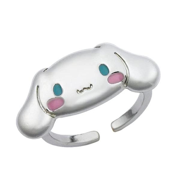 シルバーの中に青いおめめとピンクのほっぺがアクセントになっていて可愛いシナモロールのフリーサイズリングです。シナモンのフェイスデザインが存在感バツグン☆サンリオ好きにはたまりません♪専用のケース付きなので大切な方へのプレセントにもおすすめです☆彡