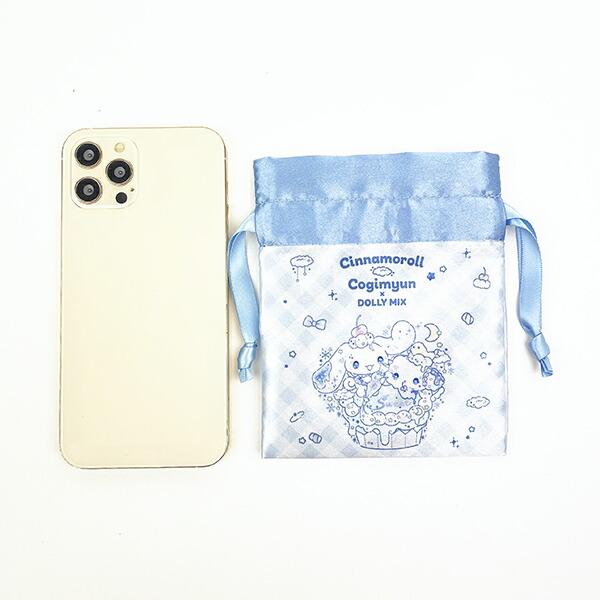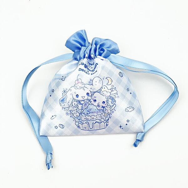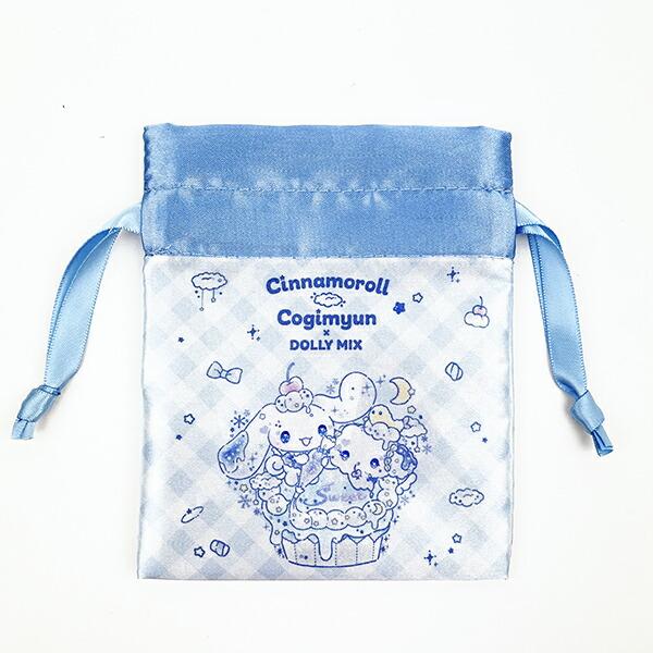 DOLLY MIX×シナモン×こぎみゅんのスイートでドリーミーなコラボが登場です!キラキラな瞳のシナモンとこぎみゅんを星やハートでデコレーション★かわいいがいっぱいな巾着袋です♪
