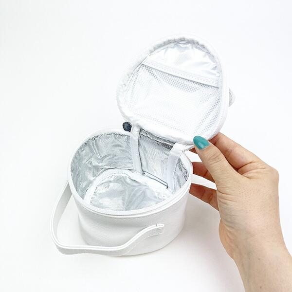 おにぎりがつぶれにくいケースです。裏はアルミ蒸着なので保温、保冷がしやすい♪おしぼりや保冷剤が入るメッシュポケット付きで便利♪