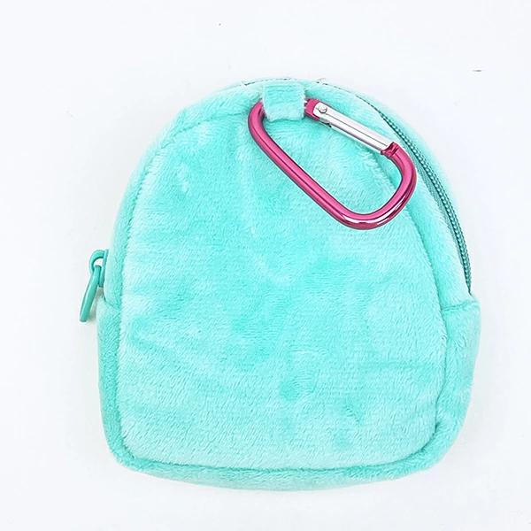 コロンとしたフォルムがかわいいカラビナ付きポーチです。リップやお菓子を入れるのに便利なミニサイズ♪