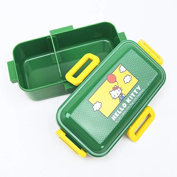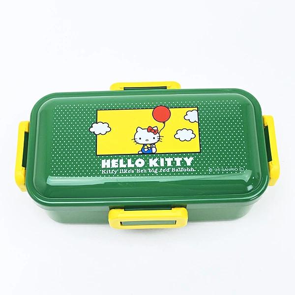 レトロデザインのキティちゃんがカワイイレンチボックスです。ドーム型のフタで、ふんわりとご飯やおかずが詰められる!高い仕切付きでおかずが片寄りにくいくて◎4点ロックの密封式で汁漏れしにくい。フタを外して電子レンジOK!食洗機OK!!容量:530ml