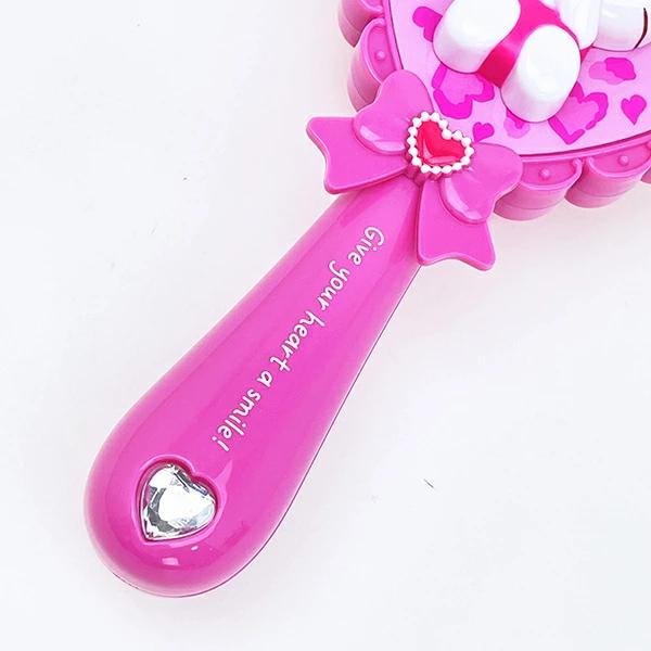 ダイカットデザインがとっても可愛いヒョウ柄のキティちゃんのヘアブラシです。痛くない柔らかいブラシで髪の長いお子様でも使えますよ♪ハート型のラインストーン付きでキラキラして可愛い~♪キティちゃん好きにはたまらない!毎日のケアにいかがでしょうか♪