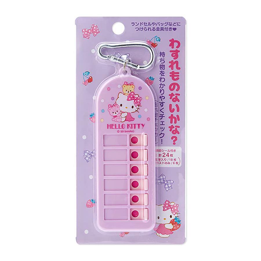 ひとりでできちゃう忘れ物チェック。スライダーを左右に動かして項目をチェックし、忘れ物を防止。バッグやランドセルにつけて毎朝チェック。 忘れ物がないかをわかりやすくチェック。ランドセルやバッグなどに付けられる金具付き。 本体サイズ:約5×0.9×13.5cm※金具部分含まず。主な材料・原料:ABS樹脂 (C)1976,2023 SANRIO CO.,LTD.(P) 対象年齢: キッズ