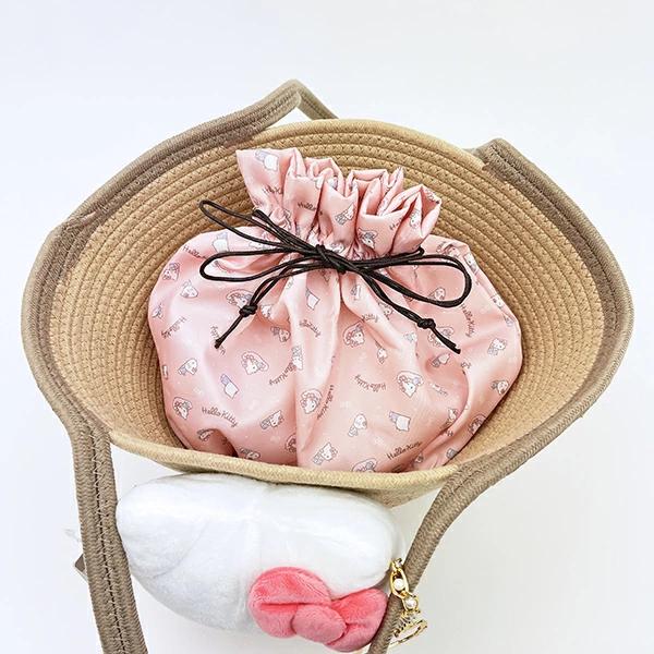 存在感抜群なハローキティの可愛いぬいぐるみが付いたかごバッグです。大きいリボンがポイント♪フェイス型のチャーム付きが嬉しい~☆巾着が付いているので、中身の目隠しができるので安心してお使いいただけます!巾着のデザインも可愛すぎます♪置いておくだけでも可愛いのでお部屋のインテリアとして、ぬいぐるみなどを収納するのもおすすめです☆彡【巾着サイズ:440×270×マチ130mm】