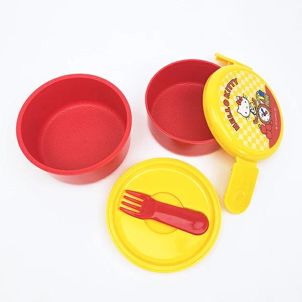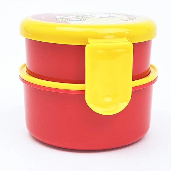 丸型おにぎりとおかずが入るかわいいランチボックスです。コンビニの丸型おにぎり1個が袋のまま入る!上段、下段とも、ごはんがつきにくい「くっつかない加工」が施されている。食後は1段にコンパクトに収納できる入れ子式。付属の樹脂製ミニフォークは中ブタに収納可能◎入れられるご飯の量はお茶碗(約200ml)で、上段は約1.2杯、下段は約1.4杯。フタ、フォーク、シールフタを外して電子レンジOK。※食洗機 使用不可!※【容量】上段:約230ml、下段:約270ml