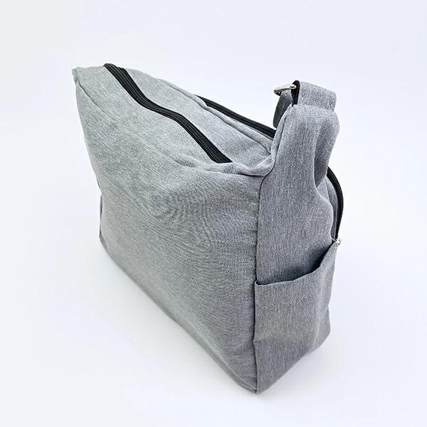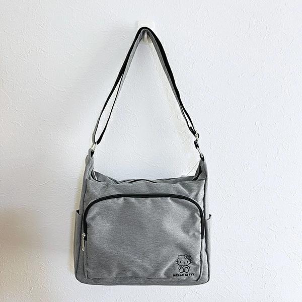 少し大きめのショルダーバッグです。ちょっとしたお出かけにぴったりなサイズ感♪前面にもポケットがあって使いやすい◎サイドにはペットボトルや水筒を収納できるポケット付き♪