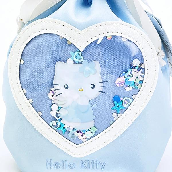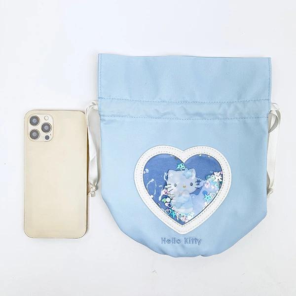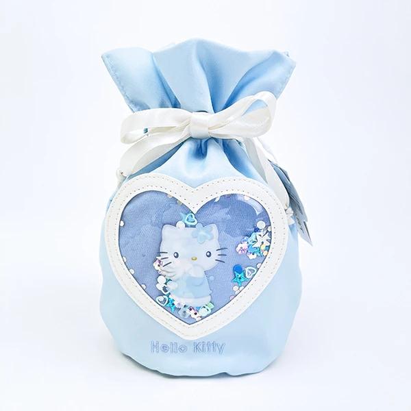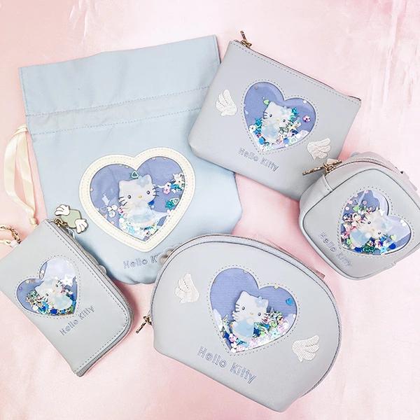 ハローキティの巾着です♪夢みるエンジェルデザインシリーズ♪きらきらスパンコールとパステルカラーに胸キュン♪バッグの中でごちゃごちゃしてしまう小物たちをまとめるのにも便利♪同じシリーズでアイテムがたくさんあるので揃えたくなっちゃう☆彡