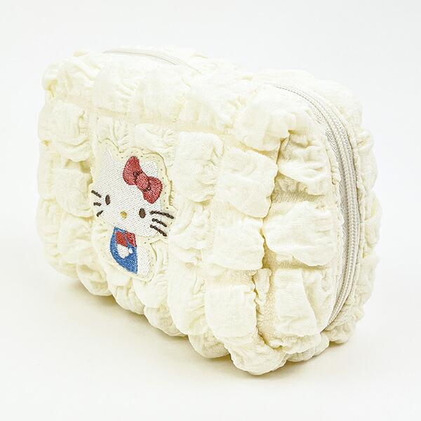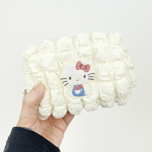 ハローキティのスクエアポーチです。ポコポコ×ワッペンデザインが可愛い☆小物入れやお菓子入れなどにぴったりです♪バッグに入れて持ち歩いたり、お部屋に置いておくだけでも可愛いです☆