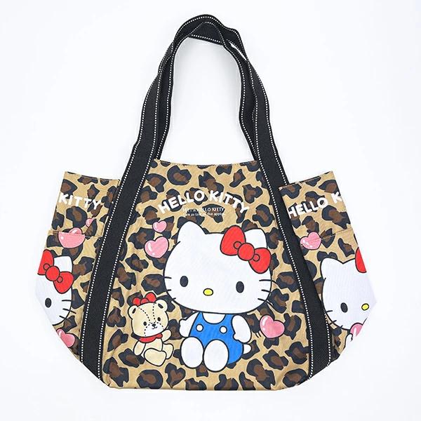 ハローキティ×レオパード柄がとってもキュートなバルーントートバッグです。大容量なので荷物の多いママさんにもおすすめ♪ポケット付きなので普段使いにもぴったり☆通勤・通学やマザーズバッグとして大活躍間違いなしのアイテムです♪