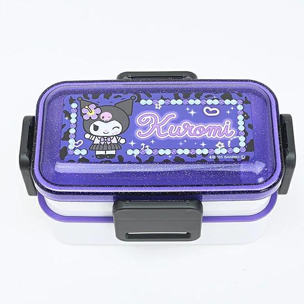 クロミの2段ふわっと弁当箱です。ドーム型のフタで、ふんわりとご飯やおかずを盛りつけておいしさUP!高い仕切付きでおかずが片寄りにくく4点ロックの密封式で汁漏れしにくい!!食べ終わった後は入れ子式なので1段に収納できてコンパクト◎クロミのランチアイテムなどと揃えれば、ランチタイムも楽しくなっちゃいそうです☆彡食洗機・フタ、中フタを外して電子レンジ使用可◎【容量:600ml(上段230ml、下段370ml)】
