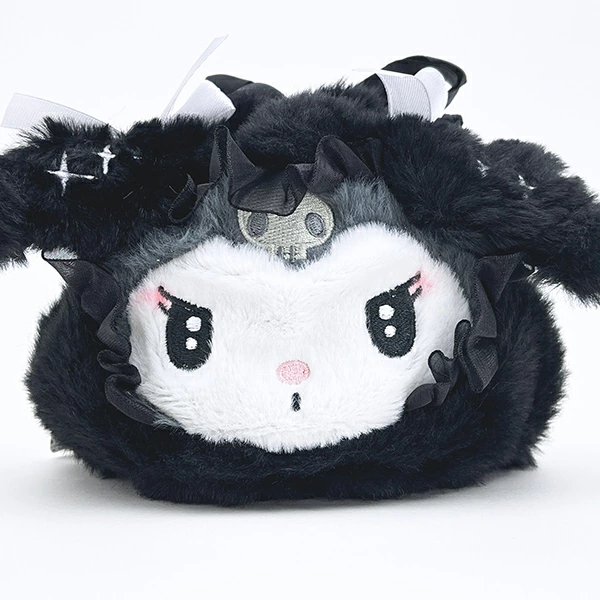 クロミのメルヘンチックなデザインのまんまる巾着です。ずきんスタイルが可愛い☆ふわふわの生地で作られているので、物を入れて巾着を絞った時にぬいぐるみのように可愛くなります♪