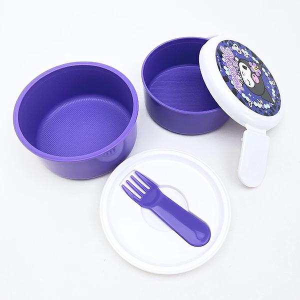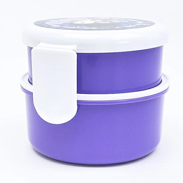 丸型おにぎりとおかずが入るかわいいランチボックスです。コンビニの丸型おにぎり1個が袋のまま入る!上段、下段とも、ごはんがつきにくい「くっつかない加工」が施されている。食後は1段にコンパクトに収納できる入れ子式。付属の樹脂製ミニフォークは中ブタに収納可能◎入れられるご飯の量はお茶碗(約200ml)で、上段は約1.2杯、下段は約1.4杯。フタ、フォーク、シールフタを外して電子レンジOK。※食洗機 使用不可!※【容量】上段:約230ml、下段:約270ml