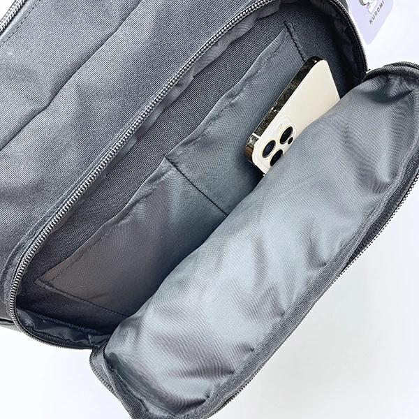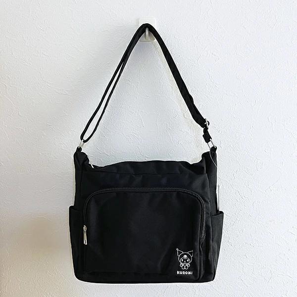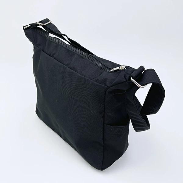 少し大きめのショルダーバッグです。ちょっとしたお出かけにぴったりなサイズ感♪前面にもポケットがあって使いやすい◎サイドにはペットボトルや水筒を収納できるポケット付き♪