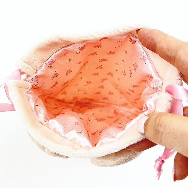 オシャレで可愛いマロンクリームのお顔の巾着です♪内側もお花のデザインで可愛い♪ぬいぐるみ素材の巾着なのでふわふわもふもふな手触り◎コスメや小物入れとしてもお使いいただけます♪