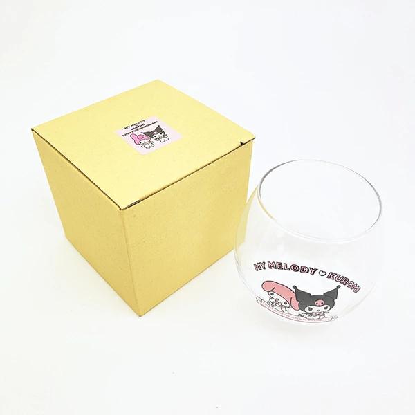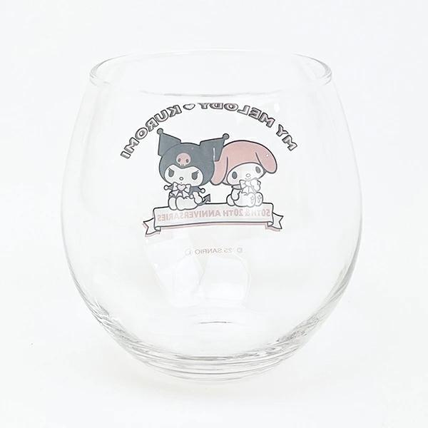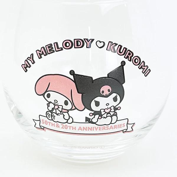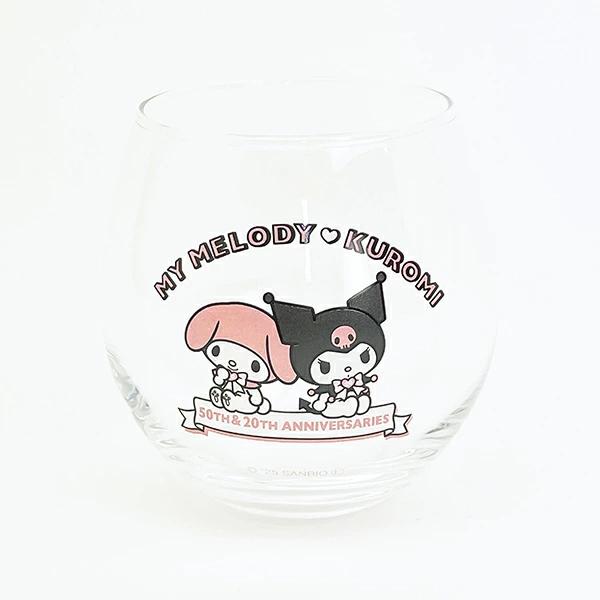 マイメロが50周年とクロミ20周年を記念したデザインのまんまるグラスです。お好きな飲み物を入れて休憩しませんか♪コロッと丸いしずく型がかわいいグラス♪専用BOX入りでプレゼントにもおすすめです◎【容量:350ml】