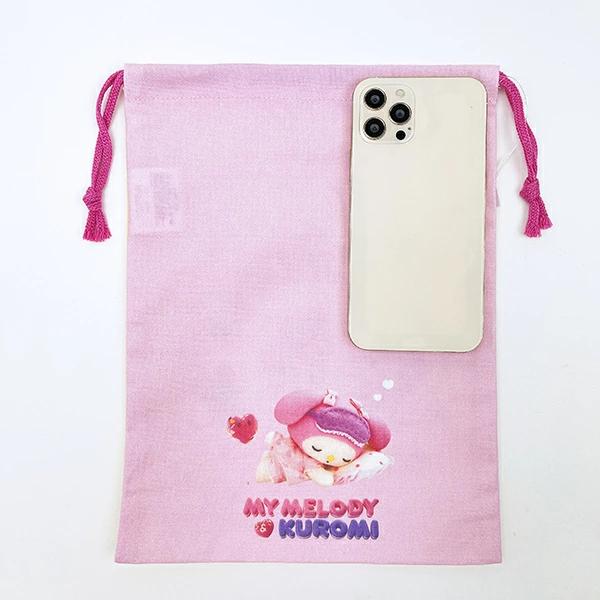 Netflixオリジナルアニメ「My Melody&Kuromi」デザインシリーズの巾着です。いつもと違うマイメロディが楽しめちゃいます♪バッグに入れておくだけで可愛いので、もうバッグの中で迷子にならずに便利☆今話題のアニメシリーズなのでぜひ記念にいかがですか?
