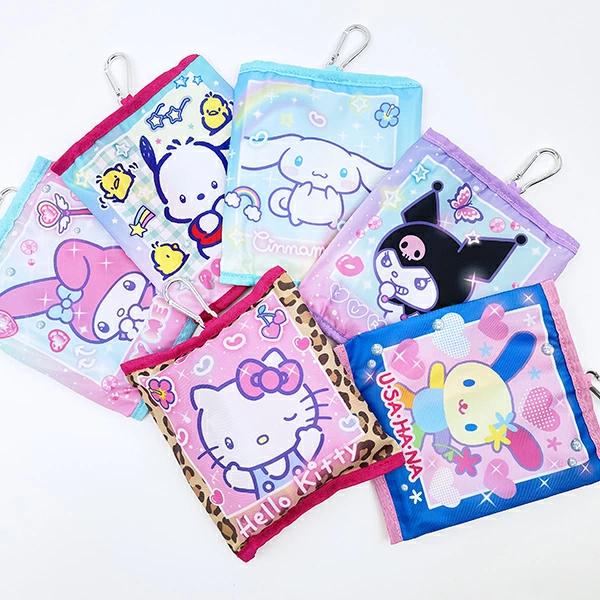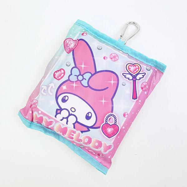 マイメロディの平成レトロなモチーフを取り入れたキャラクターたちがとってもおしゃれで胸がキュンキュンしちゃうシリーズの折りたたみカジュアルトートバッグです。カラビナ付きなのでバッグなどに付けて持ち運べます!内ポケット付きなのが嬉しいポイント♪これさえあれば急なお買い物でも安心◎どこか懐かしいデザインなので注目されること間違いなしです☆彡
