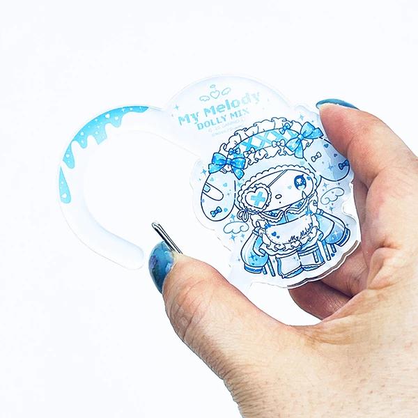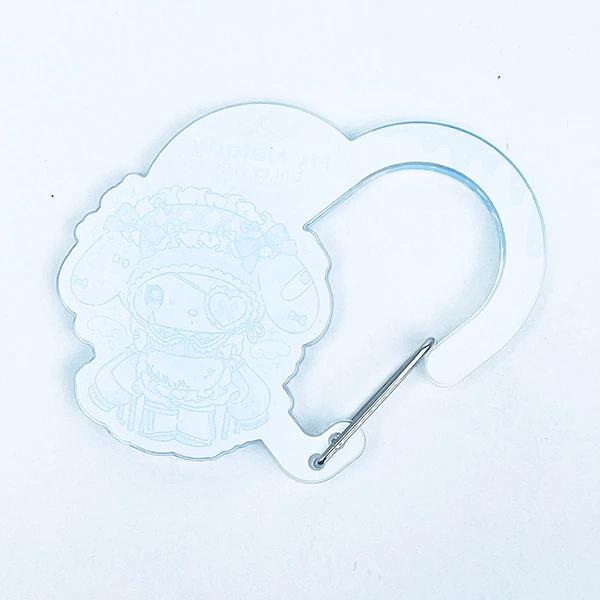 水色で少しぴえんな可愛さのデザインです。キャラのダイカットがカワイイカラビナです。キーホルダーをまとめたり、そのままバッグに付けても◎