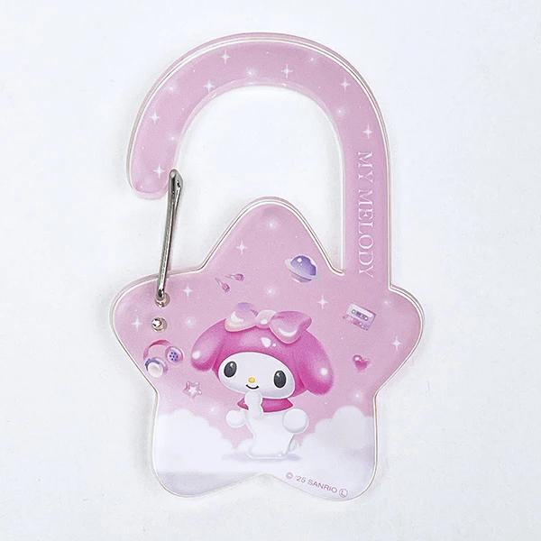 パステルカラーの背景にそれぞれのキャラクターがカワイイシリーズです。星のダイカットカラビナでキーホルダーをまとめたり、バッグに付けたりできます。