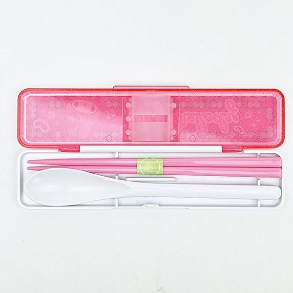 マイメロディの音が鳴らないコンビセットです。シリコンクッションが付いているので、持ち運びの際にカチャカチャ音が鳴りにくいのが嬉しい~♪使いやすい18cmのお箸とスプーンのセットなのでランチなどで大活躍すること間違いなし!マイメロディのランチアイテムなどと揃えれば、ランチタイムも楽しくなっちゃいそうです☆彡食洗機使用可◎【箸・スプーンサイズ:18cm】