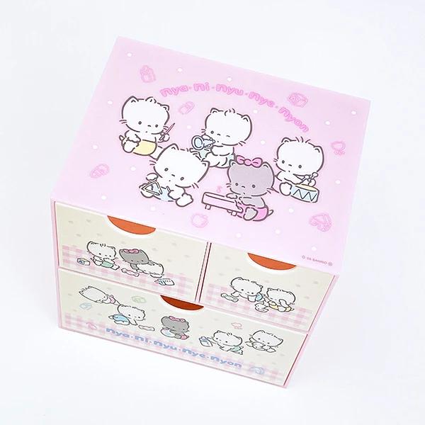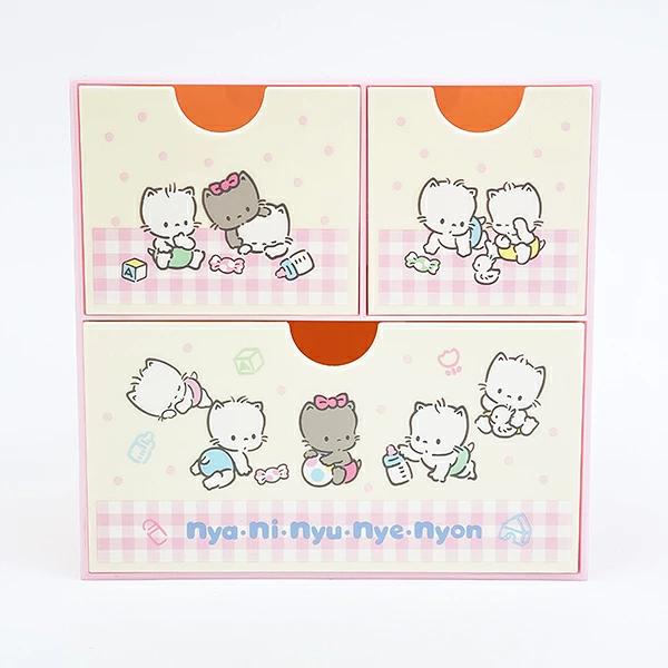 ニャニィニュニェニョのキャラチェストです♪小物やメイク道具などを収納するのに、便利なミニチェスト♪お部屋やデスク周りがすっきり片付くアイテムです☆彡