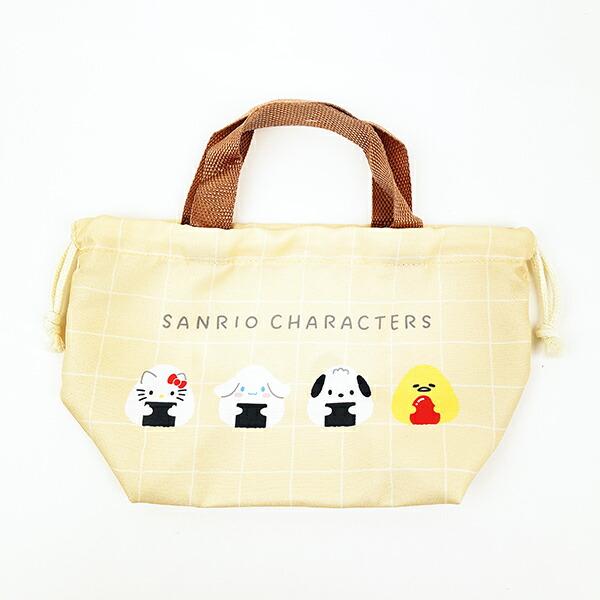 サンリオキャラクターがおにぎりになっちゃった!話題のおにぎりシリーズから巾着が登場です♪表も裏もかわいいデザインでランチタイムが楽しくなりそう♪