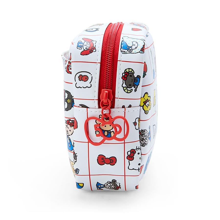 本体サイズ:約幅19×奥行5.5×高さ15cm。主な材料・原料:PUレザー、スチールファスナー式開閉。外側:オープンポケット1。内側:オープンポケット1。対象年齢3才以上※総柄デザインの部分は、商品によって柄の出方が若干異なります。(C)2024 SANRIO CO.,LTD.(P)