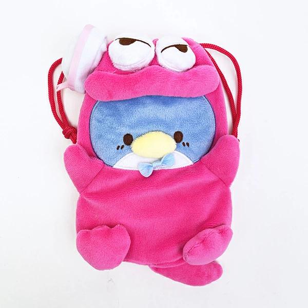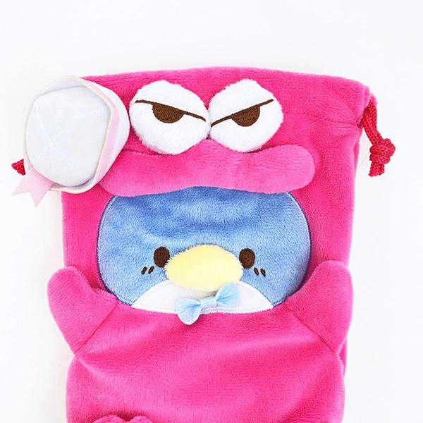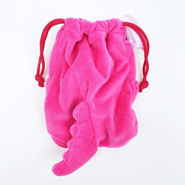 巾着の紐を絞るとぬいぐるみみたいになります。小物を入れるとより立体的に♪