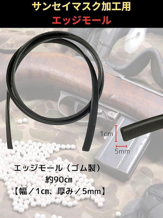 「サイズ」ラバーエッジモール 長さ約90cm幅 約1cm 厚み 約5mm マスク本体の加工、取付け作業はケガのないよう十分に注意して、自己責任においておこなってください。