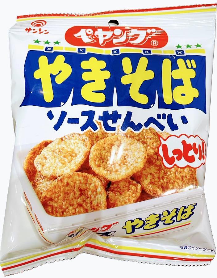 ペヤングやきそばのソースを用いた、しっとり食感の煎餅です。