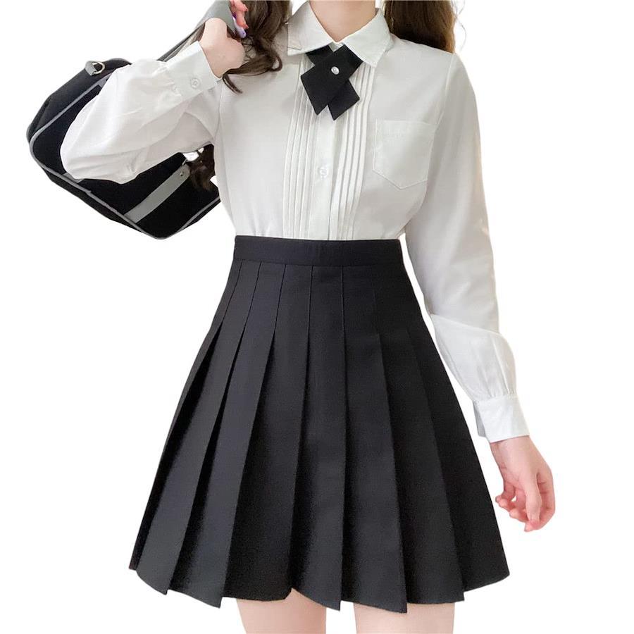 [山水集] A型スカート ミニスカート 夏服 プリーツスカート 大きいサイズ 黒 白 紺色 茶色 入学式 制服 セーラー服 コスプレ 女子高生 普段着 (S, ブラック)