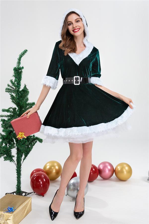 高級感のある少し厚めのベロア生地のサンタ衣装、