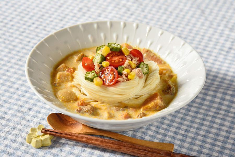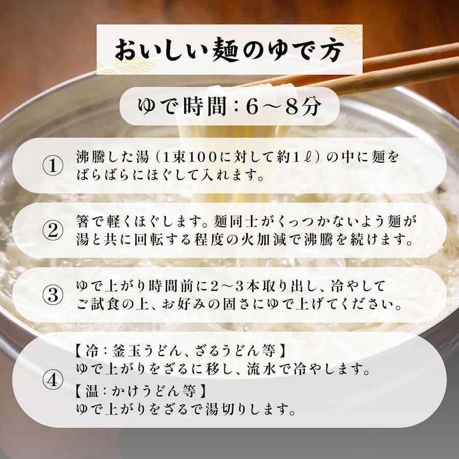 讃岐うどん手打ち店でお馴染みの「足踏み」工程を機械化した折り重ね製法により、細麺でありながら弾力があり、ツルツルと喉越しの良い「細うどん」に仕上げました。ゆで時間:6分。食欲の落ちる暑い夏に「ぶっかけうどん」や「ざるうどん」のように冷たい麺でお召し上がりいただくのがおすすめです。