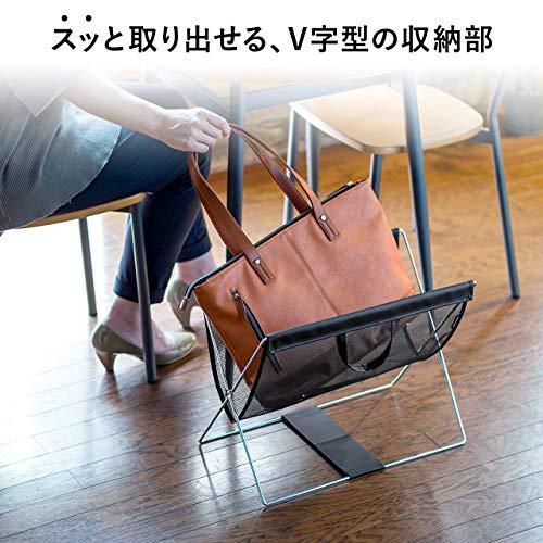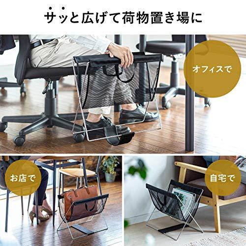 バッグや手荷物を床に直接置かず、簡単に収納できるボックスです。使用しないときは、折りたたんでコンパクトに収納可能です。オフィス、お店、シェアオフィス、ホテル、カフェ、自宅で使える手荷物収入れです。V字型の収納部で、サイドがフレームに囲まれていないため荷物の出し入れがスムーズにできます。メッシュ部分とフレームは分離可能、取っ手付きで持ち運びも可能です。底面は太めの帯でしっかりと固定されています。ネット部分は取り外し可能で、お手入れ可能です。シースルーのメッシュ素材を使用しています。