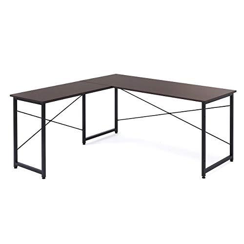 天板合計1950mmで広々使えるシンプルなL字木製デスクです。W1500×D600mmのメインデスクにW900×D450mmのサイドデスクを結合させる構造です。高級感あるダークブラウンの木目調天板を採用しています。天板はキズに強く耐水性のあるメラミン化粧板を採用しています。置きたい物やレイアウトに合わせてサイドデスクを左右入れ替えることもできます。広大なワークスペースの使い道はパソコンだけでなく、ミシン台や工作台等様々な用途で使用できます。L字の内側の脚が無い足元オープン設計なのでフリースペースが広がり、左側から右側への移動もスムーズにできます。補強パイプを4本設置し総耐荷重60kgの強度です。メイン・サブデスクそれぞれのクロス状のバックフレームで横揺れを防ぎます。天板を補強するリーンホースメントを4本搭載しています。メインデスク・サブデスクの結合部は頑丈なプレートでしっかり固定されます。デスクの各接地部は高さを微調整できるアジャスター付きです。デスク下に余分なパーツがないため、お手持ちのキャビネットやファイルワゴンもらくらく収納できます。