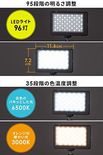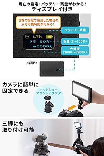 Sanwa Direct LED video light, 95 brightness levels, 35 color temperature levels, with display, rechargeable, adjustable angle, tripod compatible, 1 unit, 200-DG019