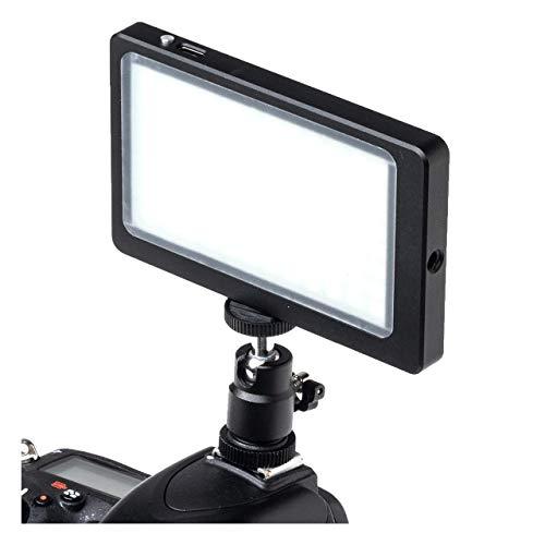 コンパクトで持ち運びに便利なカメラ用LEDライトです。一瞬だけ明るく照らすフラッシュと違い、常時点灯タイプなのでイメージした光で撮影できます。明るさは95段階(5~100%)、色温度は35段階(3000K~6500K)で調整が可能です。背面に色温度、色量、バッテリー残量をデジタルで表示します。動画配信用や表情や手元を照らす、テレワーク・在宅勤務用にも最適です。高輝度のLEDを96個搭載しています。カメラ・ビデオカメラのシューに取り付けて使用できます。ホットシューアダプタ付きで向き・角度を調整できます。充電式バッテリー内蔵で充電ケーブル1本で充電できます。マグネットを内蔵しており、金属面へ貼り付けることができます。