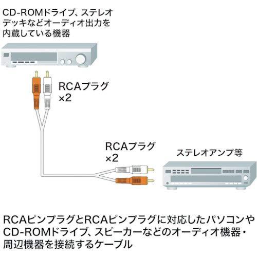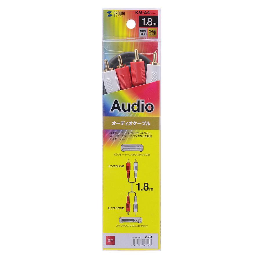 両側RCAピンプラグ(赤・白)のオーディオケーブル。1.8m。KM-A4-18K2 サンワサプライ