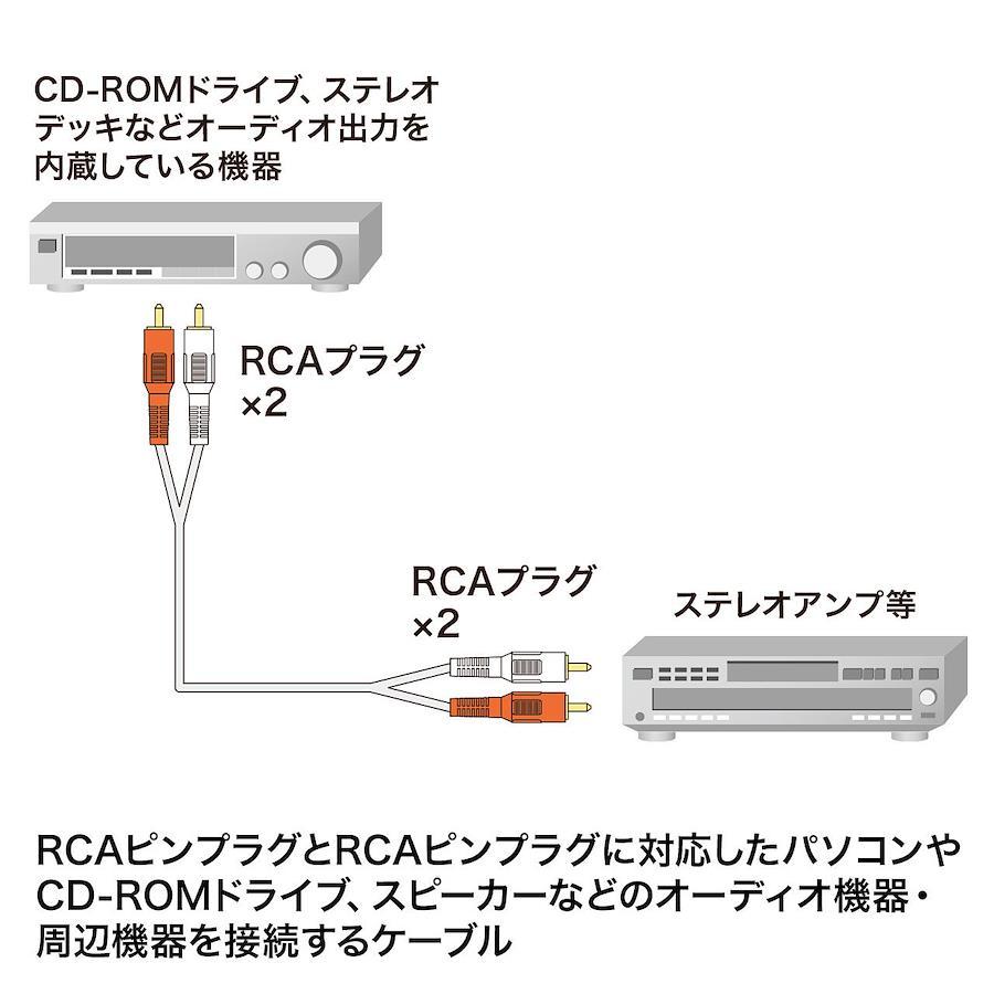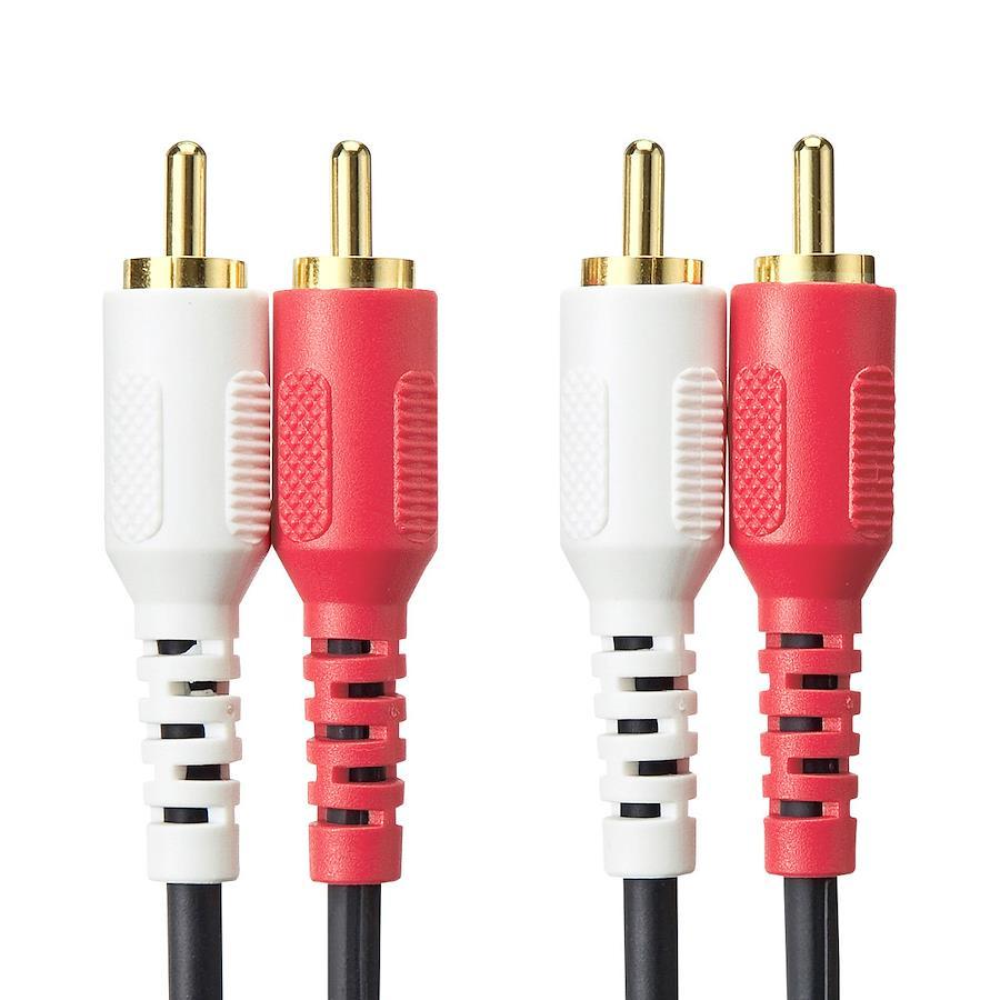 RCAピンプラグ(赤白)のオーディオケーブル【ケーブル長】:約1.8m【コネクタ】:RCAピンプラグ×2-RCAピンプラグ×2【ケーブル径】:約4.0×8.1mm【ケーブル色】:黒【プラグ】:24金メッキプラグ【タイプ】:OFCケーブル採用
