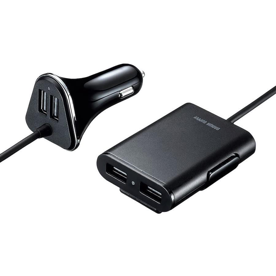 3営業日以内に発送≪新品未開封品≫:サンワサプライ カーチャージャー(4ポート・9.6A)後部座席まで届く延長ケーブル付き スマホ・タブレット対応 CAR-CHR75U