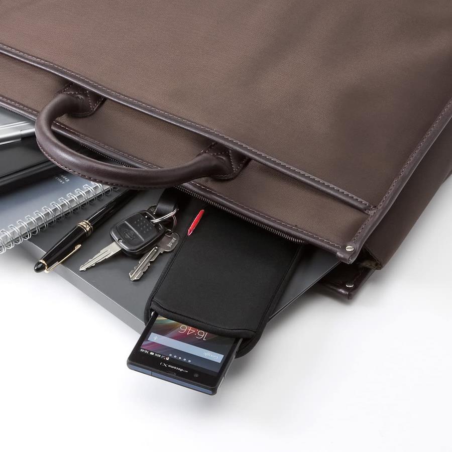 ファスナーを使用せず出し入れしやすいスリップインタイプです。