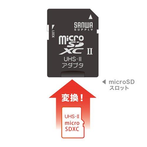 SD・SDHCスロット搭載機器でmicroSD・microSDHC・microSDXCカードを読み書きするためのアダプタ。UHS-II対応。