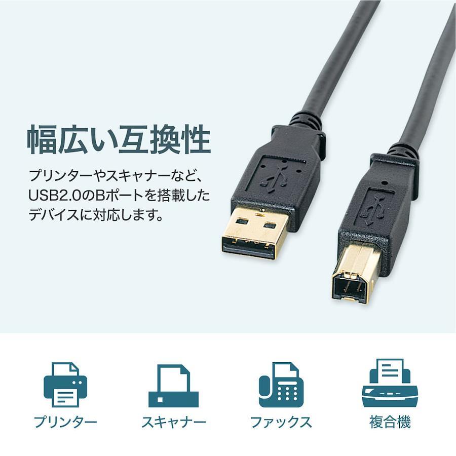 USB2.0規格・USB1.1規格準拠のパソコンとUSB機器(プリンター・HDD・USBハブ・スキャナなど)との接続や、USBハブとUSB機器を接続する時に使用するケーブルです。(「シリーズA」コネクタを持つ機器と「シリーズB」コネクタを持つ機器とを接続します)