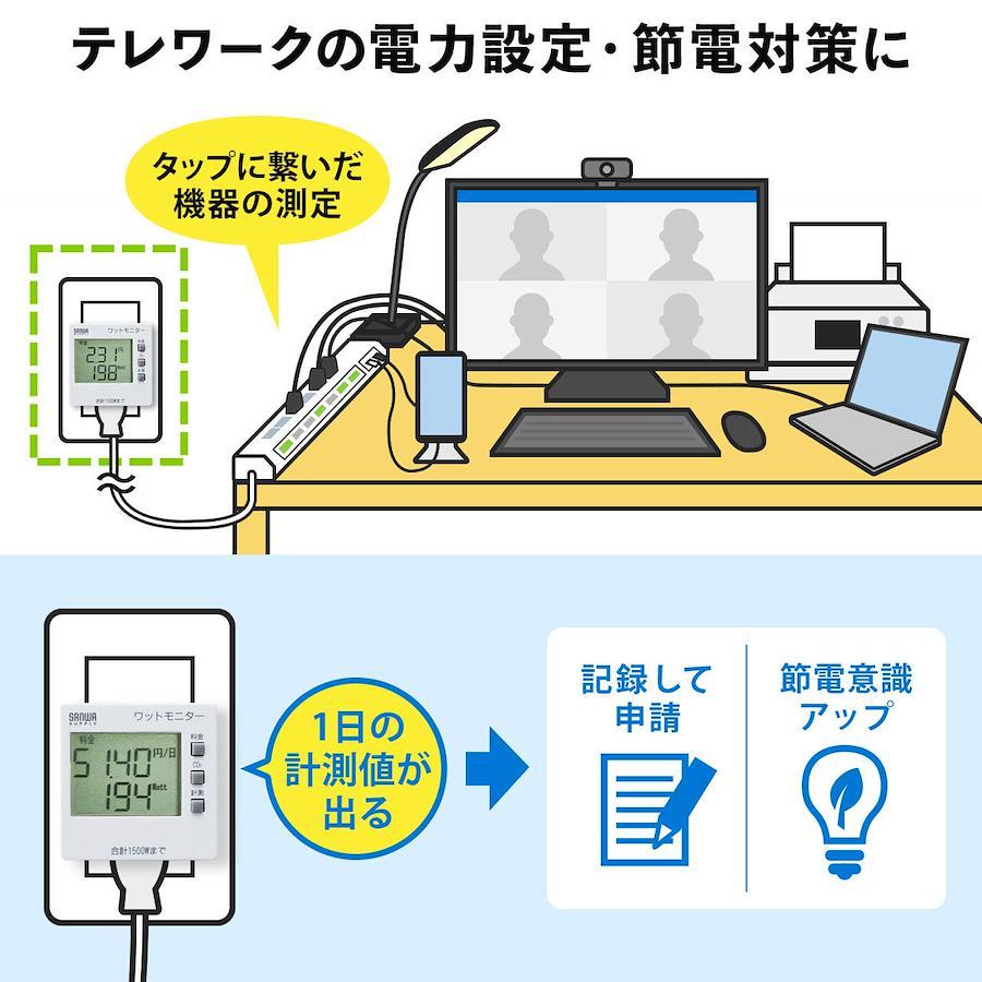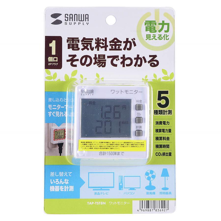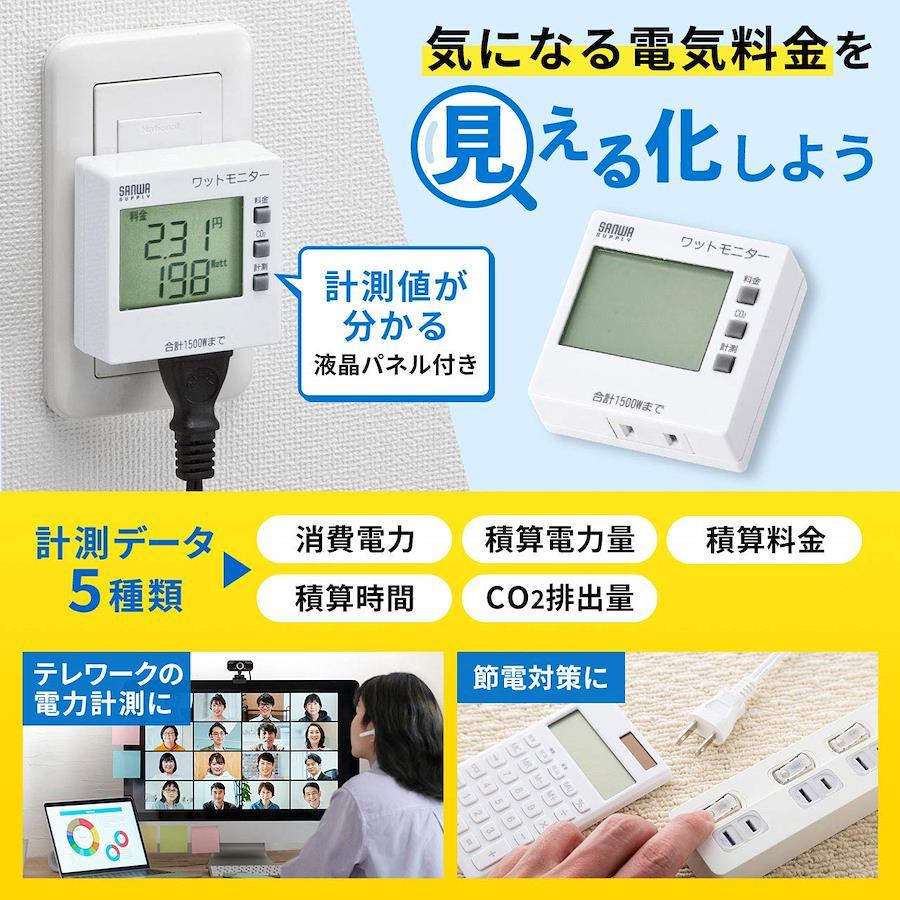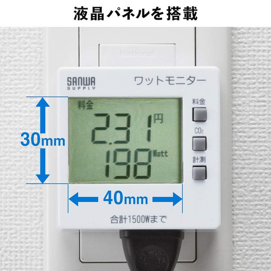 3営業日以内に発送≪新品未開封品≫:サンワサプライ ワットモニター 消費電力(W)・積算電力量(kWh)・積算時間(Hour)・積算電力料金(円)・CO2排