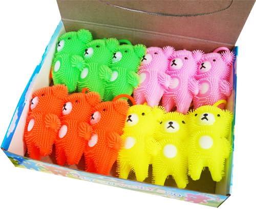 衝撃で光るヨーヨー「12個セット」。 ちょっともけもけしたくまさん型で、ぽんぽん弾ませるための先が輪っかになった紐も付いています。 化粧箱はディスプレイBOXになります。 ◆セット数量:12個 ◆アソート:4種 ◆パッケージサイズ(12個):約 H7×W32.5×D24cm ◆本体サイズ:約 H12cm(紐含まず) ◆対象年齢:7歳以上 ◆ボタン電池内蔵(交換不可) ◆製品材質:TPR こちらの商品は業務用商材の為、一定の割合(1~2割程度)の不良リスクが発生する可能性がございます。 (光り物商品には、光らないなどの不具合のある品がある程度見込まれる可能性があります。) また、デザイン・カラーが均等数で入っていない場合がございます。